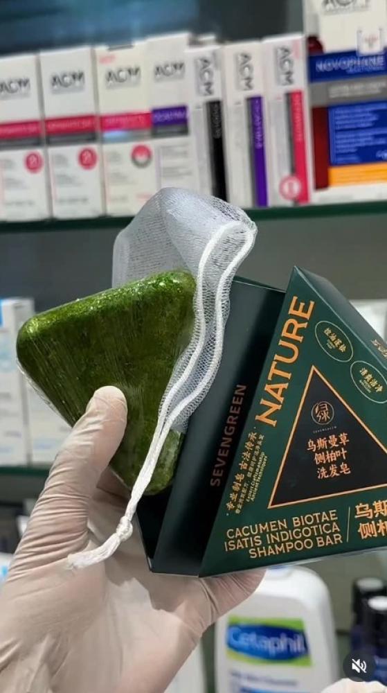 - صابونة طبيعية غنية بخلاصة الأعشاب الخضراء المعروفة بقدرتها على تنقية فروة الرأس وتحفيز بصيلات الشعر.